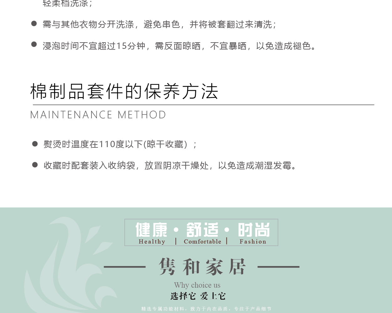 描述:100%純棉面料,優(yōu)質(zhì)環(huán)保印染工藝,無任何甲醛、增白劑、安全環(huán)保健康 全棉面料,吸濕透氣,滑爽親膚,帶給您舒適的睡眠體驗