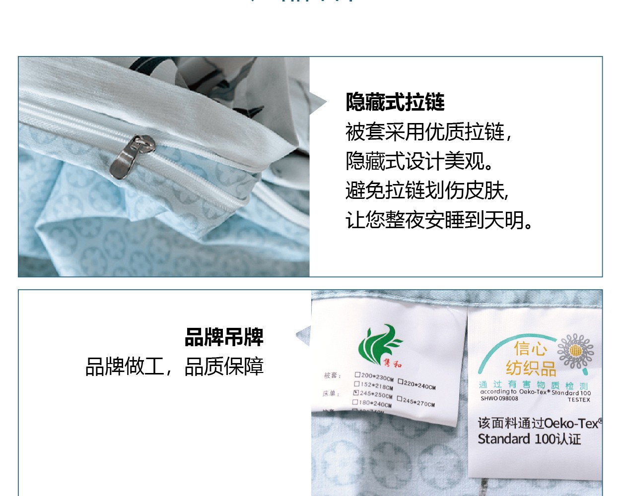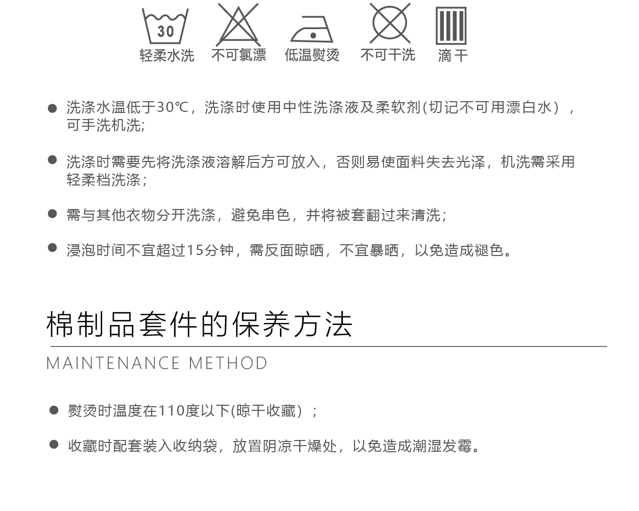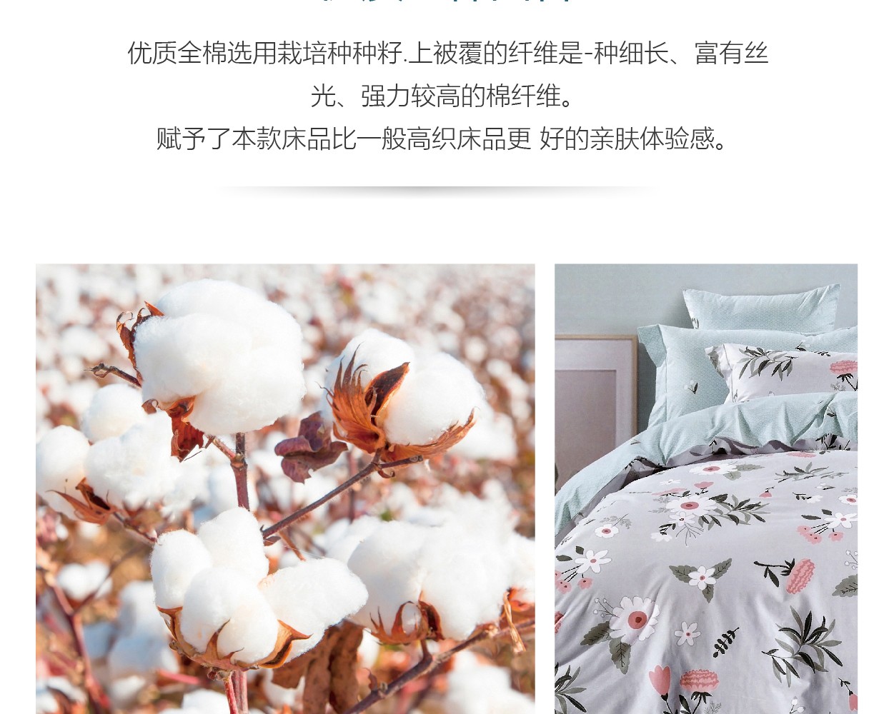 描述:全棉面料,吸濕透氣,滑爽親膚,帶給您舒適的睡眠體驗(yàn) 織造面料的每一根纖維 選取長(zhǎng)度均大于30mm,精梳去除粗纖維,無任何斷線起球。