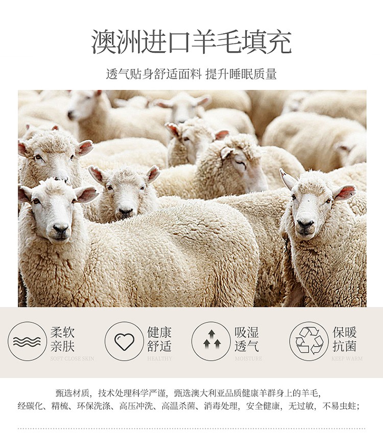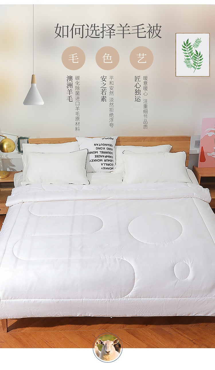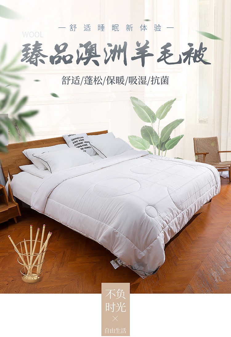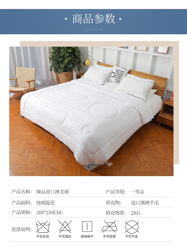 描述:進口澳毛填充,提花被套加花邊工藝,看上去高檔大氣!保暖透氣舒適