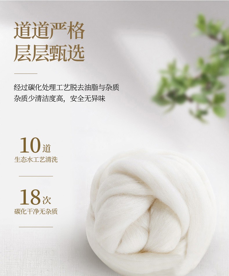 描述:挑選高品質(zhì)羊毛填充,卷曲特性能夠存儲大量空氣,提溫不易流散更保暖 層層甄選,經(jīng)過碳化處理工藝脫去油脂與雜質(zhì),雜質(zhì)少清潔度高,安全無異味