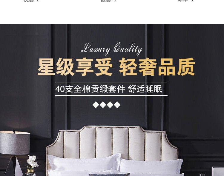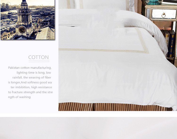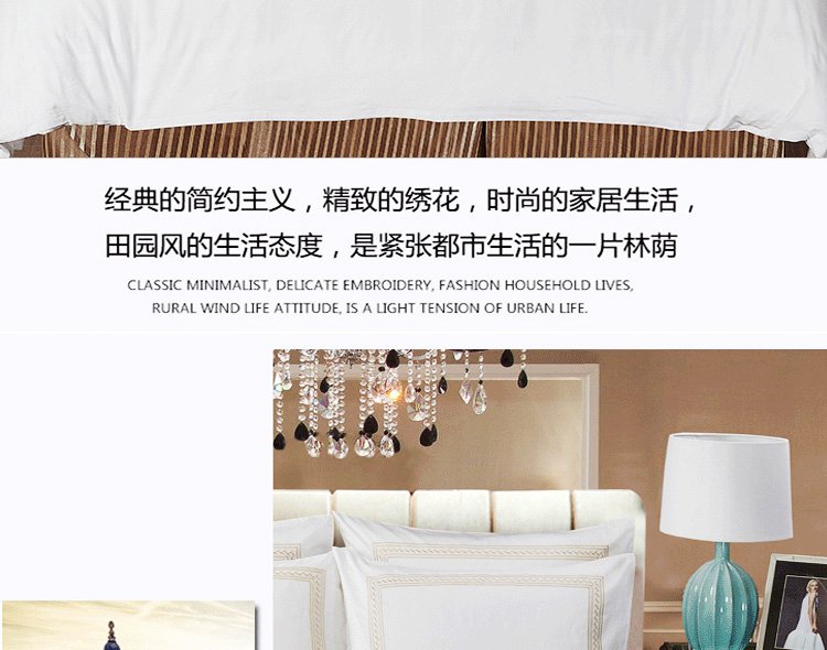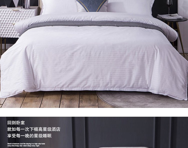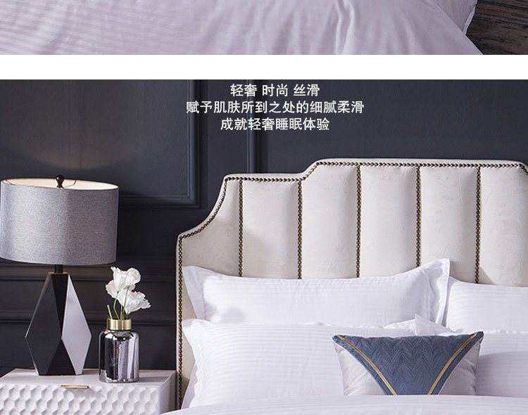 描述:本公司為客戶提供各種酒店布草,多種款式、支持來圖定制,均是全工藝一手品牌面料,細(xì)致考究的工藝,富裕每一個(gè)床品細(xì)膩如綢的柔軟觸感。
