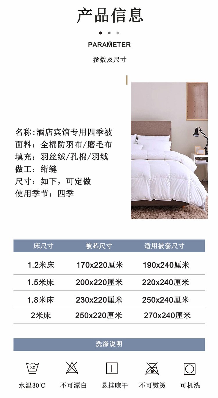 品牌:酒店專用四季被(可填羽絲絨|孔棉|羽絨)