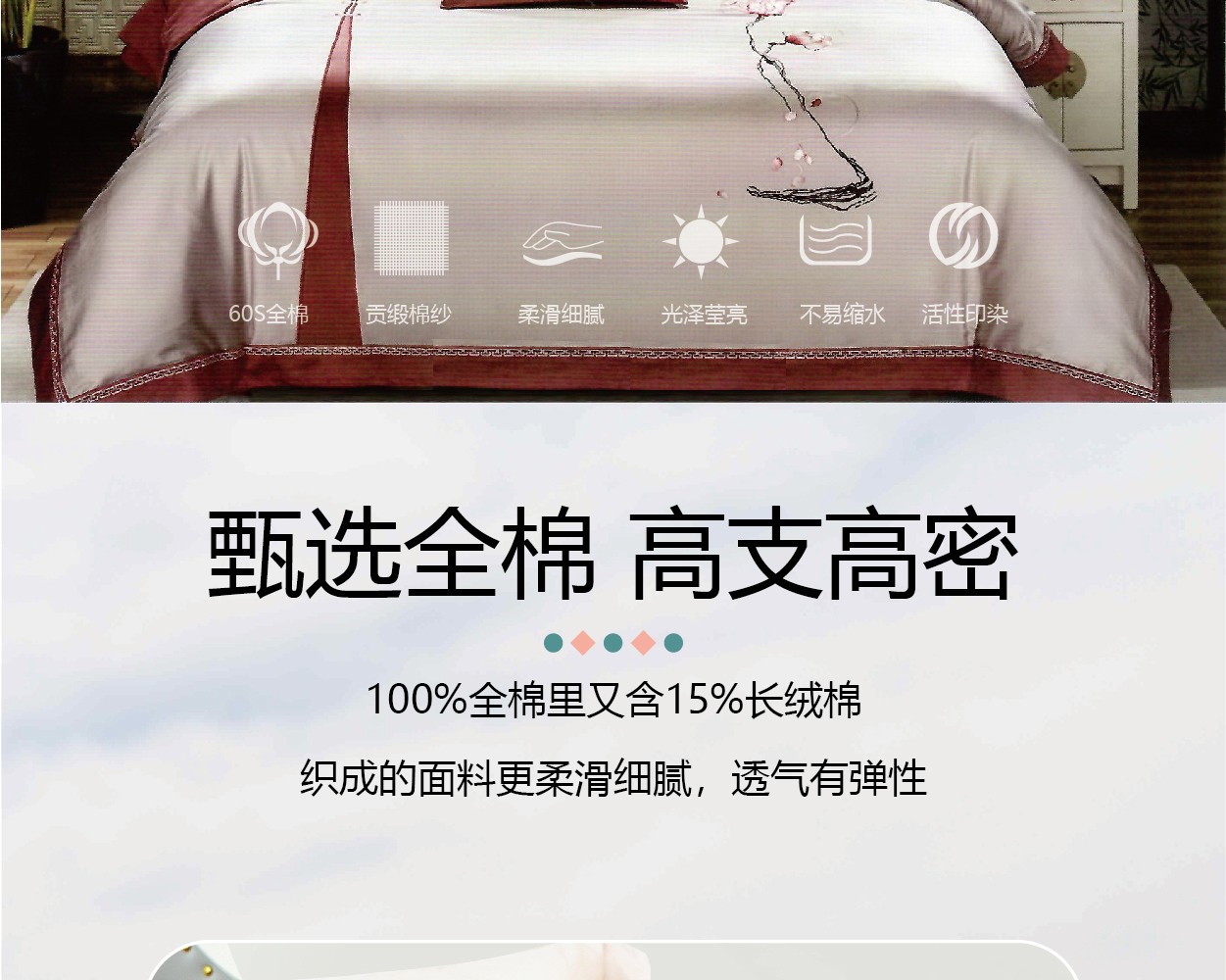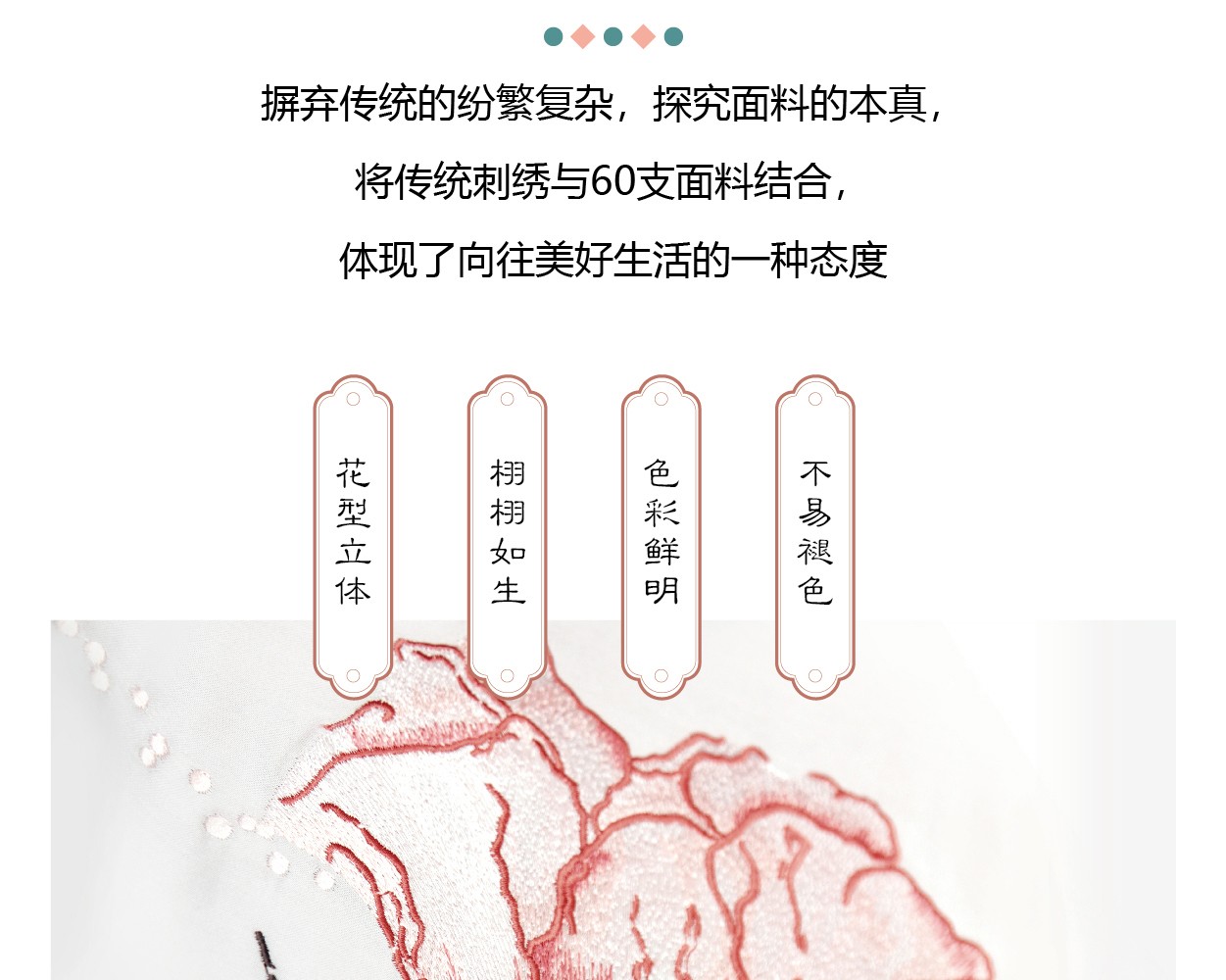描述:新中式風(fēng)格,緞紋織造,繡花溫馨高雅,舒適親膚,裸感極致體驗(yàn)