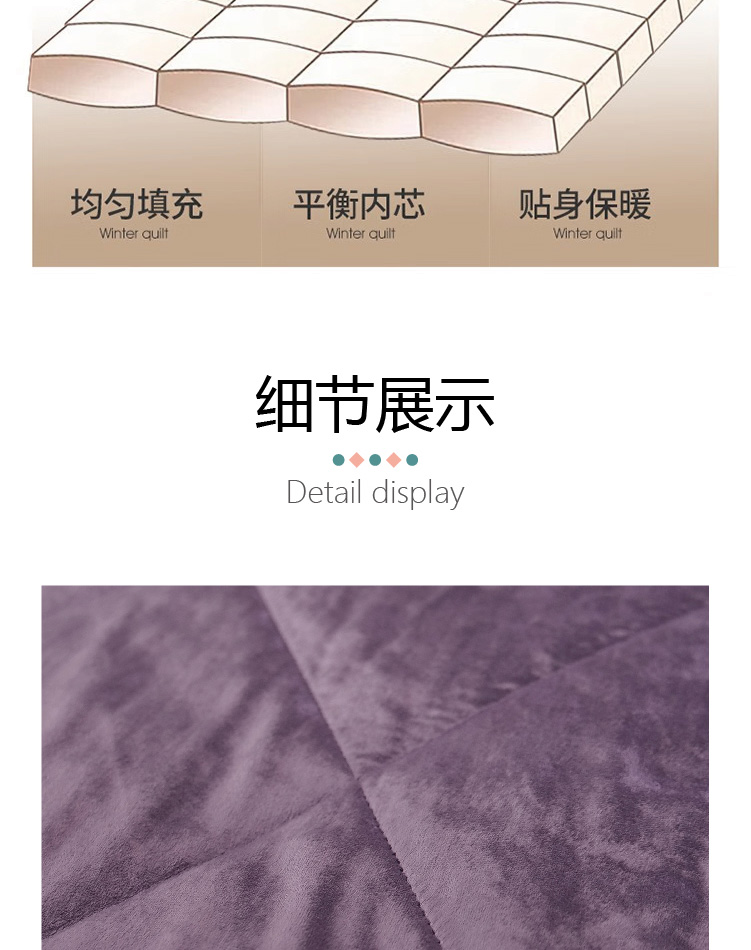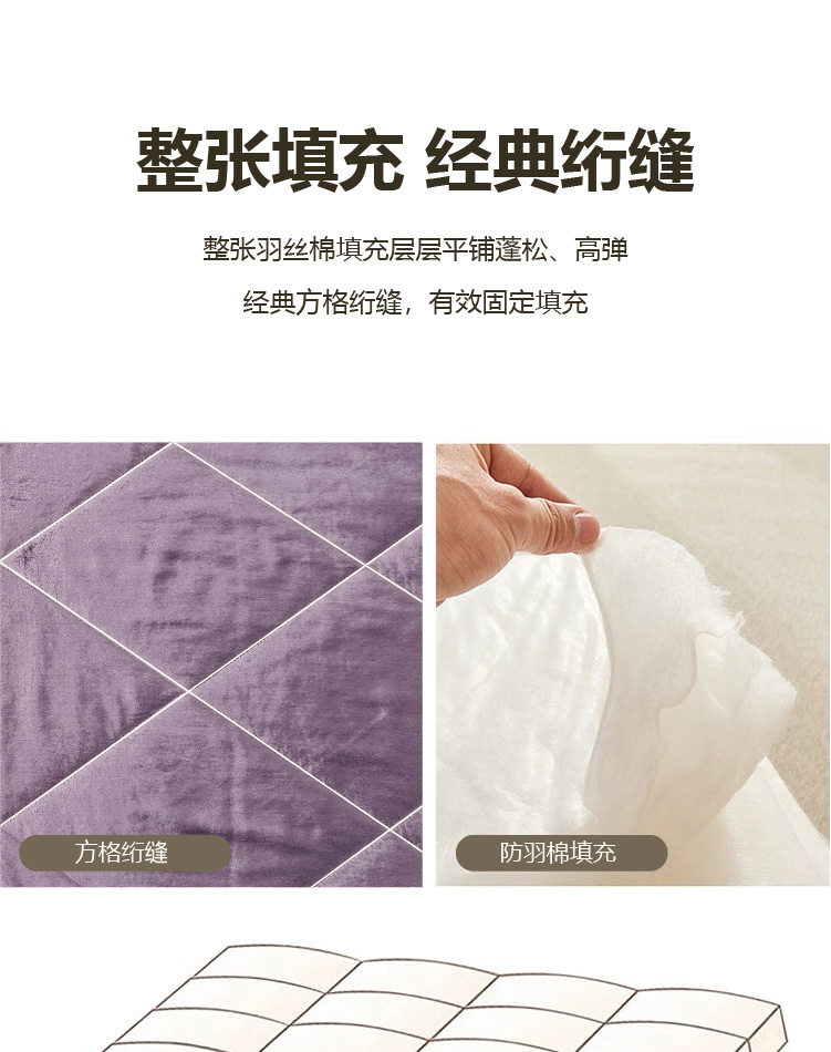 描述:采用雙層設(shè)計(jì),不壓身,完美鎖住溫度,優(yōu)質(zhì)面料柔軟親膚,固定填充不板結(jié)不變形。