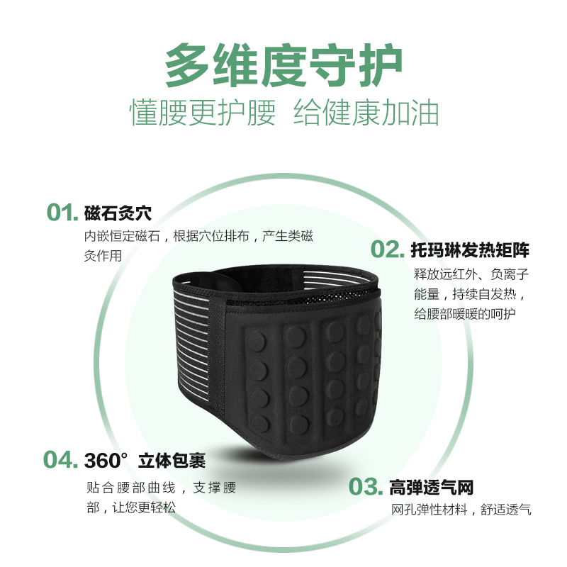 描述:16顆稀土磁石+1顆強太極磁作用于腰部,形成磁場包圍圈,釋放磁能量,獨特點狀矩陣設計,對應腰部穴位均勻發(fā)熱,熱量直達人體內(nèi)部,呵護腰部,不懼寒冷。