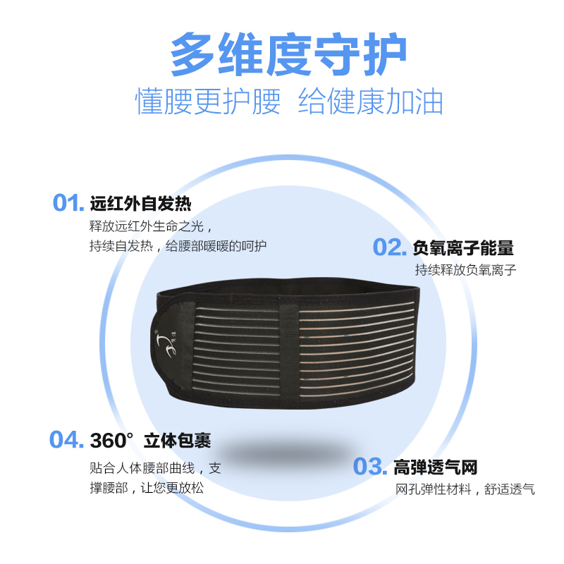 描述:元氣養(yǎng)生帶是一款針對腰部問題研發(fā),具有透氣、遠紅外理療、高強彈力、負離子能量等功能的腰帶, 對腰部痛疼、腰部損傷的人士有很好的輔助理療作用,長期使用可以緩解身體多種不適