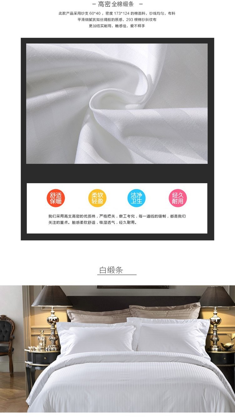 描述:本公司為客戶提供各種酒店布草,多種款式、支持來圖定制,均是全工藝一手品牌面料,細致考究的工藝,富裕每一個床品細膩如綢的柔軟觸感。