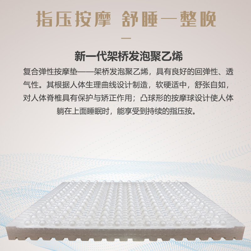 內(nèi)芯材質(zhì):遠(yuǎn)紅外功能層、恒定能量磁場(chǎng)層、進(jìn)口環(huán)保架橋按摩層、抗菌防螨功能層